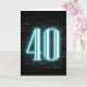 An einer dunklen Ziegelwand steht ein leuchtendes türkisfarbenes Neonzeichen zum 40. Geburtstag.