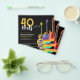 40 Rocks Rock and Roll 40. Geburtstag Party Einladungen mit drei coolen farbenfrohen psychedelischen Aquarellgitarre-Illustrationen. Eine E-Gitarre mit Feuerflammenmuster und rotem Pick-Guard, eine bunte semiakustische Gitarre und eine psychedelische klassische Akustik-Gitarrengrafik mit personalisierter cooler Typografie in Schwarz und Gold. Dieses einfach zu bedienende Template schafft die perfekte Einladung, um vierzig Rock'n'Roll zu feiern und ist ideal für Gitarristen, Musiker und Musiker. Jeder Gitarrist sagt dir, dass du nie zu viele Gitarren haben kannst. Dieses coole, moderne Musikinstrumentendesign zelebriert die musikalische Energie dieses wunderbaren Musikinstruments und ist der perfekte Weg, um einen vierzigsten Geburtstag zu feiern. Original-Kunstwerk von Catherine Sweetman