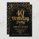 40. Geburtstagsfeier Party Einladung. Elegantes Design in Schwarz und Imitat Glitzer Gold. Features stilvolle Skript-Schriftart und Konfetti. Nachricht, wenn du ein Alter brauchst.