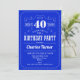 40. Geburtstagsfeier Party Einladung. Elegantes königsblaues und weißes Retro-Design mit Skript-Schriftart. Bis 40 Jahre! Nachricht, wenn Sie weitere Anpassungen benötigen.