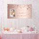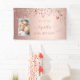 Ein Banner für ein mädchenhaftes und glamouröses 40. Geburtstag Party. Ein Imitat Rose goldfarbenen Hintergrund mit glänzenden und glitzernden Tropfstern. Personalisieren und fügen Sie Ihr eigenes Foto, ein Name in dunkler Rose Gold mit einem großen modernen handgeschriebenen Stil Skript mit Swashes geschrieben. Um die Swashes behalten, löschen Sie nur den Beispielnamen, verlass die Leerzeichen oder Emoji's vor und nach dem Namen. Vorlagen für ein Datum und 40 Jahre. Perfekt sowohl als Begrüßungsbanner als auch als Party.