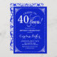 40. Geburtstag Einladung Elegantes Vintages königsblau-weiß Design mit Damast-Muster. Enthält Skript-Schriftart. Bis 40 Jahre! Kann in jedem Alter personalisiert werden! Nachricht, wenn Sie weitere Anpassungen benötigen.
