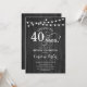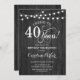 Rustikale 40. Geburtstagseinladung. Rustikales, einfaches Design mit dunkelgrauem Holzmuster und Feenschienenleuchten. Enthält Skript-Schriftart. Bis 40 Jahre! Kann in jedem Alter personalisiert werden! Nachricht, wenn Sie weitere Anpassungen benötigen.