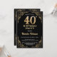 40. Geburtstag Schwarz-Gold-Glitzer-Rahmen Einladung