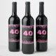 40. Geburtstag Schwarz Rosa Balloons | IMITATE GLI Weinetikett