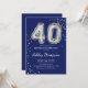 40. Party Einladung. Elegantes Design in Imitaten Glitzer Silber und Marineblau. Einladende Karte verfügt über Silber-Nummer 30 Ballons und Skript-Schriftart. Ideal für eine stilvolle Feier. Nachricht, wenn du ein Alter brauchst.