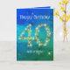 40. Geburtstagskarte - Blauer, grüner, getexturierter Gradient Design, mit 40 in Weiß, Gold und Rot Sternen. 40 in Sternen - Altersnummer - Vierzigste Geburtstagskarte - Hintergrund der blauen grünen Farbgebung - Anpassbarer Text. Blue Green Card mit Sternen Nummer Design - die Zahl "40" mit gelben, roten und weißen Sternen. Sie können den Text nach Belieben bearbeiten oder löschen, indem Sie auf "Diese Vorlage personalisieren" klicken. Anpassbarer Text: auf der Vorderseite der Karte: Glücklich Geburtstag und einen Namen hinzufügen. Anpassbarer Text: Insider-Karte: "Herzlichen Glückwunsch zum 40. Geburtstag" und ein eigener Nachrichtenbereich. Weitere Farben und andere Zeitalter sind verfügbar. Wenn Sie eine spezielle Anforderung haben, kontaktieren Sie mich bitte.