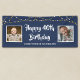 Feiern Sie einen 40. Geburtstag mit diesem bearbeitbaren königsblauen Bannerzeichen mit zwei Fotos (vielleicht "Dann" und "Jetzt") von ihm oder ihr, dem vorgeschlagenen Titel "HAPPY 40TH BIRTHDAY" in Ihrer Auswahl von Schriftart-Stilen und -Farben (in einem Pinselstrich-Schriftart in Weiß dargestellt), personalisiert mit ihrem Namen oder Ihrem eigenen Text und mit goldenen der weißen Saitenleuchten. Nehmen Sie Änderungen in EDIT vor. BANNEROPTIONEN: Das Muster wird im Format 2.5x6 angezeigt; andere Größen sind auf der Bestellseite verfügbar. Es besteht die Möglichkeit, das Design auf eine Schaumplatte, ein Plakat, einen Tapestry oder ein anderes Produkt zu übertragen oder es vom Designer in eine DIGITALE DOWNLOAD-Datei umzuwandeln, BEVOR er bestellt, es lokal zu drucken. HILFE: Für Hilfe bei der Modifikation oder Personalisierung des Designs, bei Farbänderungen, bei der Größenänderung, bei der Übertragung des Designs auf ein anderes Produkt oder wenn Sie die Dinge koordinieren möchten, wenden Sie sich bitte an den Designer BEFORE der Bestellung über Zazzle Chat oder per E-Mail makeitaboutyoustore@gmail.com.