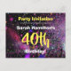 Lebhafter Stil für ein besonderes 40. Geburtstagsfest mit Namen und Alter. Party Einladung für einen 40-jährigen.