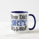 40. Tasse. Vierzig, 40, Jahre alt. Wie ist Vierzig passiert? ist die kühne grafische Botschaft auf dieser blauen und weißen Tasse.gift für ein 40. Geburtstagsgeschenk.