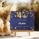 Antrendy marineblau, unebenfarbiger Hintergrund mit goldenen Imitaten. Fügen Sie Foto, Namen und Text hinzu. Die Altersnummer wird mit einem Schriftart im Ballonstil geschrieben. Spine: Fügen Sie Ihren Text hinzu.