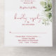 Alles-in-einem 40. Hochzeitstag-Einladung mit botanischem Grün, rustikalen Blättern und eleganter rubinroter Typografie. Die Einladung enthält eine perforierte Antwortkarte, die einzeln adressiert oder leer gelassen werden kann, damit Sie die Adressdetails Ihrer Gäste handschriftlich eintragen können. Entworfen von Thisisnotme