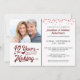 Einladend für Ihre Gäste mit dieser 40. Hochzeitsjubiläumseinladung mit einer Konfetti-Grenze in rubinrot mit Retro-Typografie, die 40 JAHRE IN THE MAKING mit ihrem im Design integrierten Hochzeitsjahr festlegt. Fügen Sie ein aktuelles Foto, ein Hochzeitsportrait oder ein Foto aus den jüngeren Jahren hinzu, um eine lustige Einladung mit Blick aus der Vergangenheit zu erhalten. Wenden Sie sich an den Designer, wenn dieses Design geändert werden soll oder ein anderes Produkt Ihr Party-Ensemble ergänzen soll.