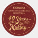 Maßgeschneiderte, personalisierte 40. Hochzeitsticker, Umschlag Aufkleber oder Gunst-Labels, die das besondere Ehepaar feiern und ihr Hochzeitsjahr als Teil der 40 JAHRE in der MAKING Retrotypografie in rubinrot und gold integrieren. FARBE ÄNDERUNG: Die rubinrote Hintergrundfarbe kann geändert werden, um sie mit dem Party-Farbthema abzustimmen. Wenden Sie sich an den Designer, wenn dieses Design geändert werden soll oder ein anderes Produkt Ihr Party-Ensemble ergänzen soll.