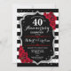 Ruby Red 40. Hochzeitstag Party Einladung. Elegante rote, Schwarz-weiße Einladungskarte mit Imitat Glitzer Silber. Das Design ist mit schwarz-weißen Streifen, Skript-Schriftart und rote Rosen ausgestattet. Ideal für ein 40-jähriges Jubiläum.