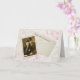 Altmodischer Schnappschuss-Rahmen mit einem Umschlag und rosa Herzen auf einem altmodischen Damaskashintergrund zum 40. Hochzeitstag. Ersetzen Sie das Template Foto durch das Foto Ihres Paares.