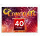 Dies ist eine farbenfrohe Mitarbeiter-Jubiläumskarte mit dem Text 'GLÜCKWUNSCHS, die in einem lustigen Schriftart mit einigen Wirblen Elementen geschrieben und mit einem gelben bis tiefroten Farbverlauf überlagert wird, mit einer Touch von digital geschaffenen funkelnd Sternen und Punkten Details. Der Text ist ein Set gegen ein spannendes feierliches Feuerwerk-Hintergrund mit einer passenden Farbpalette zum Text. Unter GLÜCKWÜNSCHEN steht ein Banner, auf dem '40 JAHRE' geschrieben ist. BITTE BEACHTEN SIE: Der Funkeleffekt in diesem Design wurde digital erstellt, es gibt keinen Glitzer oder zusätzliche Texturen in der endgültigen gedruckten Karte. Natalie Kinnear Cards