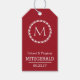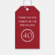 Persönlich gestalten Sie Ihr 40-jähriges Hochzeitsfest, Gast-Favoriten oder Geschenke mit diesen eleganten Geschenketiketten im Stil der Bundsflagge, mit Ihrem mit Monogramm Anfangsnamen und 40 auf der Rückseite des Tags, umgeben von einem wunderschönen verzierten Kranz. Die Hintergrundfarbe des Musters wird in rubinroter Farbe angezeigt, mit modernem Text in Weiß- Alle Farben, Texte und Schriftart personalisieren. Klicken Sie auf "Anpassen". HINT: Ruby Red ist die Farbe für einen 40. Hochzeitstag. Herzlichen Glückwunsch!
