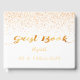 Ein Gästebuch für ein glamouröses 40 & Fabulous, 40. Geburtstag Party. Ein eleganter weißer Hintergrund mit goldenem Konfetti-Sprinkle. Der Text: Das Gästebuch ist mit trendigen Imitaten mit goldenen Buchstaben geschrieben. Der Name wird mit einem handgeschriebenen Stilskript geschrieben. Vorlage für Ihren Text auf der Wirbelsäule.