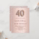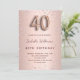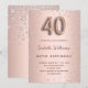 Ein modernes, stilvolles und glamouröses Party zum 40. Geburtstag. Ein Imitat Rose gold metallische Hintergrund mit rosa Diamanten. Der Name ist mit einer modernen dunklen Rose goldfarbenen Handschrift geschrieben, die als Stilschrift dient. Personalisieren Sie Ihre Party-Daten und fügen Sie sie hinzu. Nummer 40 wird mit einem Schriftart im Ballonstil geschrieben, Skript.