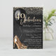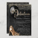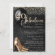 Diese Einladung enthält ein glamouröses Party aus dem 40. Jubiläum auf schwarz metallischem Hintergrund. Ein großer schwarzer Ballon wird auf dem links mit "40" bedruckt in einer Goldfolie. Die Veranstaltungsinformationen folgen dem Titel "40 & fabelhaft". Ein glänzend aussehendes goldenes High Heel Stilettos wird im unteren links abgebildet. Glamouröse Goldfische Glitzer Konfetti betont die obere und untere Portion. Es ist perfekt zum Geburtstag, Jubiläum oder anderen besondere Anlass.