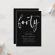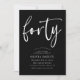 Dieses moderne, weiße Schwarz-Design besticht durch das Wort "40" in einer Schriftzeichen-Kalligraphie und eine elegant verteilte, moderne Typografie mit klassischen Serif-Schriftart. Die Einladungen verwandeln sich in ein zartes, sich wiederholendes Dreieck-Muster in Schwarz und Farbgrau. Geeignet für Damen und Herren. Wählen Sie aus gedruckten Zazzle-Einladungen mit verschiedenen Eckstilen und herrlichem Papierbestand, oder sofort herunterladen, wenn Sie es jetzt benötigen, oder beides, damit Sie Papier und digitale Einladungen nach Bedarf senden können.