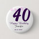 40th birthday add name date year purple floral pin button
