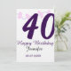 40th birthday add name date year purple floral pin einladung