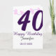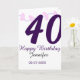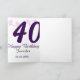 40th birthday add name date year purple floral pin karte