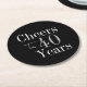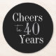 40th Birthday Cheers 40 Years Black Silver Party Runder Pappuntersetzer