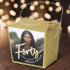Forty gold script and gold look two sided photo party favor boxes. Personalize this 40th birthday party script photo favor box with your own birthday girls name and photo of your birthday girl or boy. Other years and matching items are available and can be created by request. © Original design by Sarah Trett for www.mylittleeden.com on Zazzle.
