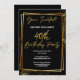 Set the stage for a fun and fabulous 40th Birthday Party with this gold and black Invitation. Designed with a gold frame on black with gold colored confetti accents. The text includes: Your Invited!, The Name, 40th Birthday Party, The Date, Location Name and Address, and your RSVP Contact Name and Details. The reverse is a matching black background. To personalize, simply insert your text into our easy template, replacing the sample. This invitation is available in both Print and Download.