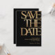 Make a bold and sophisticated statement with this black and gold save the date card, designed for a stylish and memorable celebration. Featuring large modern typography with a luxurious gold look on a deep black background, this design is perfect for an upscale event.