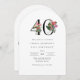 This 40th birthday invitation features a clean, sophisticated arched card shape with a touch of elegance. The number "40" is prominently displayed in large, graceful serif font embellished with vibrant tropical flowers and lush foliage to add a burst of color and painted details. Palm fronds, hibiscus, fig blossoms, anthuriums, bird of paradise, and orchids adorn the number "40" with beauty and elegance for this special milestone birthday celebration. Below the age, the event details are presented in a smaller, equally elegant serif font, ensuring the layout remains balanced and sophisticated. The overall layout is simple and minimal yet chic, with generous spacing between elements to maintain clarity and elegance, creating an invitation that feels both personal and timeless. Personalize the easy-to-use text template with your event details. These invitations may be ordered in both printed and instant download digital formats. Here are some great birthday party theme suggestions using this design: “Tropical Luau Birthday Bash” “Boho Tropical Birthday” “Aloha Birthday Vibes” “Tropical Paradise Milestone Party” "Palm Beach Tropical Birthday Party" "California Dreaming Birthday Party".