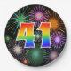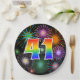 Dieses lustige, fröhliche und farbenfrohe Papier-Platte-Design hat eine große Zahl "41" mit einem Regenbogenspektrum inspirierte Muster-Färbung. Es zeichnet sich auch durch ein spannendes und lebendiges, aufstrebendes Feuerwerk inspiriert Muster aus. Der Hintergrund ist schwarz. Teller wie diese können bei einem Party zum Feiern des einundvierzigsten Geburtstages von jemandem, eines 41. Geburtstages oder eines anderen 40. [~Z0000490]