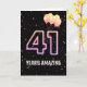 Party Ballons und Konfetti auf schwarzem Hintergrund mit der Neonnummer 41 für einen 41. Geburtstag.
