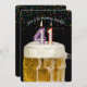 Nummer 41 Kerze in Tasse von Bier mit bunten Konfetti auf schwarz für 41. Geburtstagsparty einladen.