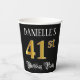 Dieses luxuriöse und extravagante Geburtstagszeitpapier-Cup-Design mit einem bearbeitbaren Namen und der Meldung "41. Geburtstagsparty". Die große Zahl "41." hat ein in Gold inspiriert Farbmuster von Imitation/Imitaten, die Wörter "Geburtstagsparty" sind im verzierten Skriptstil gehalten, und der Hintergrund ist standardmäßig schwarz gefärbt (auch wenn er angepasst werden kann). Opulente, elegante Papiertassen wie diese könnten bei einer Geburtstagsfeier zum Geburtstag von jemandem zum 41. Geburtstag nützlich sein. [~Z0000567]