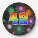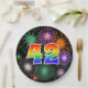 Dieses fröhliche, lustige und farbenfrohe Papier-Plattendesign zeichnet sich durch eine große Zahl "42" aus, die eine inspirierte Farbgebung des Regenbogenspektrums aufweist. Es zeichnet sich auch durch ein lebendiges und aufregendes Feuerwerk inspiriert. Der Hintergrund ist schwarz. Teller wie diese können sich bei einem Party zum 42. Geburtstag von jemandem, 42. Geburtstag, 42. Geburtstag oder einer anderen 42. Veranstaltung gut nutzen lassen. [~Z0000490]