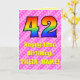 42. Geburtstag: Rosa Streifen & Herz, Regenbogen # Karte