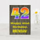 Die Vorderseite dieses bunten und dennoch rustikalen Geburtstagskarten-Design zeigt eine große Zahl "42" mit einem Regenbogenspektrum inspirierte Muster. Es enthält auch die Meldung "Happy 42. Birthday", und einen benutzerdefinierbaren Empfängernamen. Die Vorderseite ist mit einem Hintergrund versehen, der ein rustikales Imitat im Holzkornstil darstellt. Im Inneren befindet sich eine individuell anpassbare Geburtstags-Grußnachricht, oder vielleicht kann gelöscht und links werden, wenn eine Nachricht von Hand geschrieben werden soll. Eine individuell anpassbare Geburtstagskarte wie diese könnte eine lustige Art sein, jemandes zweiundvierzigsten Geburtstag zu bestätigen. [~Z0000419]