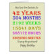 42. Geburtstagskarte, die die Jahre, Tage, Monate, Stunden und Minuten hinunter zählt. Eine Karte, die zum Nachdenken anhält! Es wurden die Leap-Jahre berücksichtigt!
