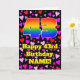 Die Vorderseite dieser fröhlichen und bunten Geburtstagskarte zeigt eine große Zahl "43" mit einem inspirierten Regenbogenspektrum. Es enthält auch die Meldung "Happy 43. Geburtstag", und einen bearbeitbaren Namen. Der Hintergrund der Vorderseite ist mit rosa, roten und lila Herzformen unterschiedlicher Größe gestaltet. Die Innenseite hat eine individuelle Geburtstagsgrüßnachricht, oder könnte gelöscht und leer verlassen werden, wenn eine Nachricht von Hand geschrieben werden soll. Eine so personalisierte Geburtstagskarte könnte verwendet werden, um den dreiundvierzigsten Geburtstag von jemandem zu bestätigen. [~Z0000551]