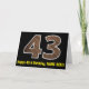 Die Vorderseite dieses rustikalen und lustigen Geburtstags-Thema Grußkarte Design bietet eine große Zahl "43" mit einem Imitation Holz Getreide inspiriert Aussehen Muster, zusammen mit der Meldung "Happy 43. Geburtstag," und einem bearbeitbaren Namen. Im Inneren befindet sich eine benutzerdefinierte Geburtstagsgrüßbotschaft, oder man könnte sie löschen und leer verlassen werden, wenn eine Nachricht von Hand geschrieben werden soll. Eine personalisierte Geburtstagskarte wie diese könnte eine lustige Art sein, eine Botschaft zum Feiern des dreiundvierzigsten Geburtstages von jemandem zu senden. [~Z0000431]