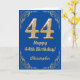 44. Geburtstag Blue and Gold Glitzer Frame Karte