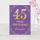 45. Geburtstag Lila und Gold Glitzer Frame Karte