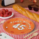 Nah-up eines orangen pickleball für einen 45. Geburtstag. Alle Texte können geändert oder gelöscht werden.