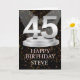 Machen Sie eine 45. Geburtstagskarte durch einen Namen besonders attraktiv. Die Nummer 45 auf einem Sockel mit Scheinwerfern leuchtet auf!