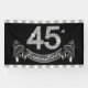 45. Geburtstagsbanner mit wunderschönen silbernen Diamantenzahlen und hübschen silber-schwarzen Bannern auf schwarz-silber Hintergrund. Sie können die Hintergrundfarbe ändern, die Größe des Banners ändern und Text hinzufügen, um dieses wunderschöne 45. Geburtstagsbanner zu personalisieren! Dies ist ein gedrucktes Design ohne echte Diamanten, Silber, Glitzer, etc.