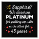 Spaß Design, perfekt für jeden, der seit 45 Jahren verheiratet ist und für eine Hochzeitsfeier. Es ist ein hervorragendes passendes Outfit für Paare! 'Saphirblau? Wir verdienen Platinum, dass wir uns für ein 45-jähriges Zitat für ein Ehepaar, das vor 45 Jahren verheiratet got, oder für ein Paar, das sich zum Saphirjubiläum erneut verlieh, zusammengetan haben. Sind Sie ein romantischer Ehemann oder eine romantische Ehefrau? Akzentuieren Sie Ihren Stil mit dieser Kunst! Ein tolles Geschenk für einen Freund, der vor 45 Jahren verheiratet got, Ehemann oder Ehefrau von 45 Jahren, oder Vater und Mutter feiern ihren 45. Hochzeitstag.